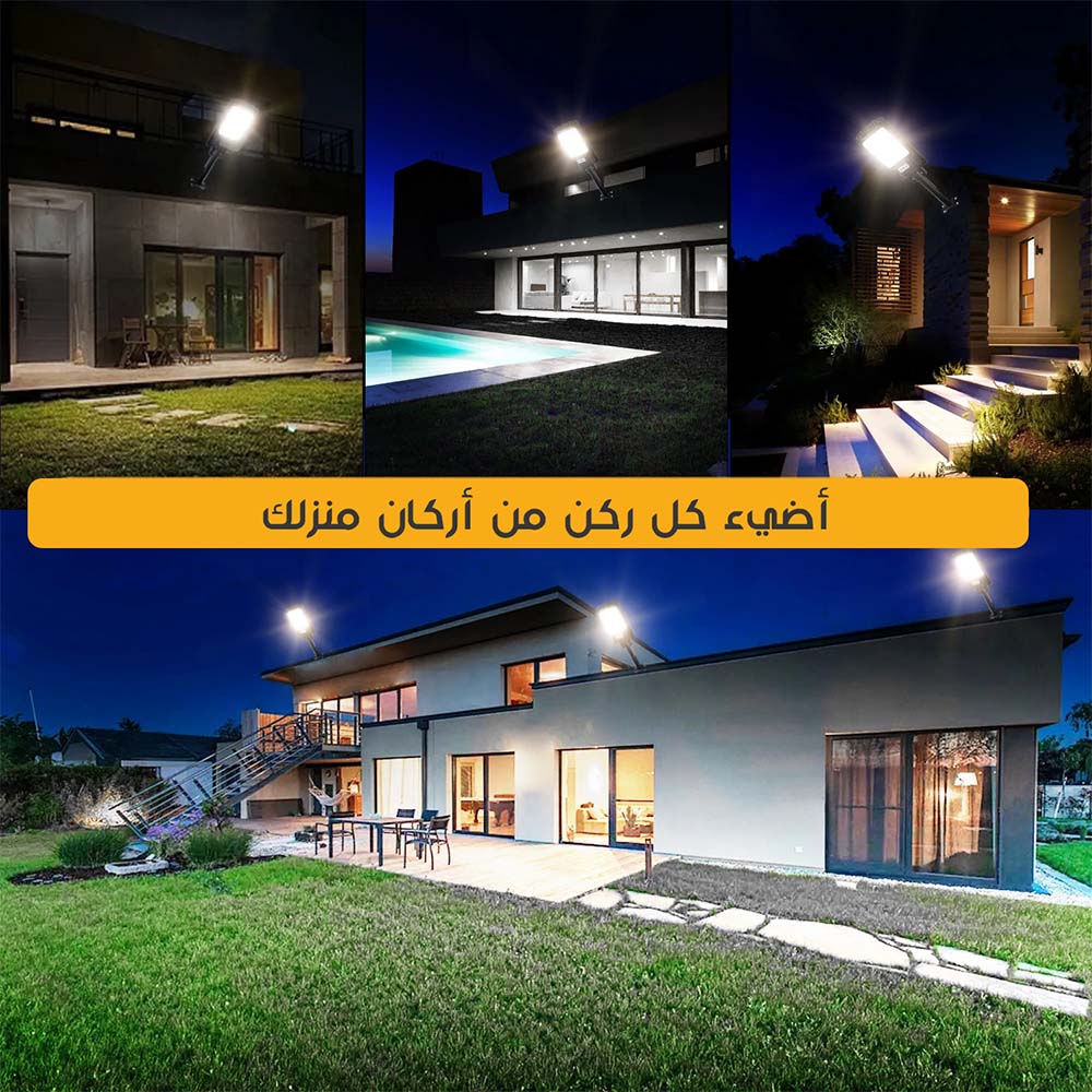 مصباح ليد بالطاقة الشمسية لإضاءة الخارجية يتوفر على 10 مصابيح 420 ليد و 210 واط، مزود بلوحة شمسية لشحن أكبر قدر من الطاقة، ليوفر إضاءة فائقة السطوع في الليل، إضافة إلى ذلك فهو مزود بي مستشعر للظلمة و مستشعر للحركة بحيث يضيء في حال وجود حركة بالقرب منه، يمكن تثبيته على الأبواب و المسارات أو حمامات السباحة و العديد من الأماكن الأخرى.